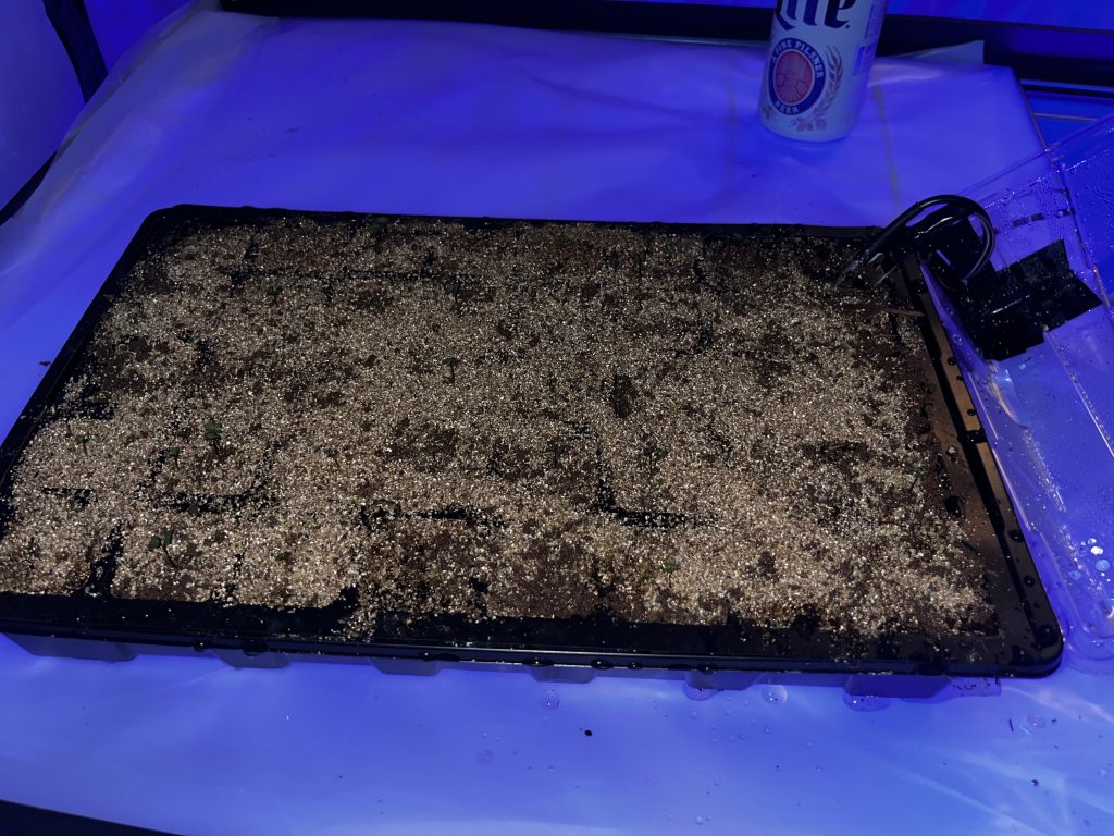 Once I saw >20 sprouts popping through the soil, I removed the humidity dome and heating mat.
