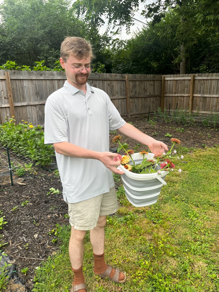 The nursery transplants (zinnia and gomphrena) really took off the second they were in the ground. In order to maintain their health, I would give these plants ~10 seconds of direct water every 2-3 days if there was no rainfall. Thankfully, this June in Ohio was decently wet, so this only resulted in a few watering sessions throughout the month.