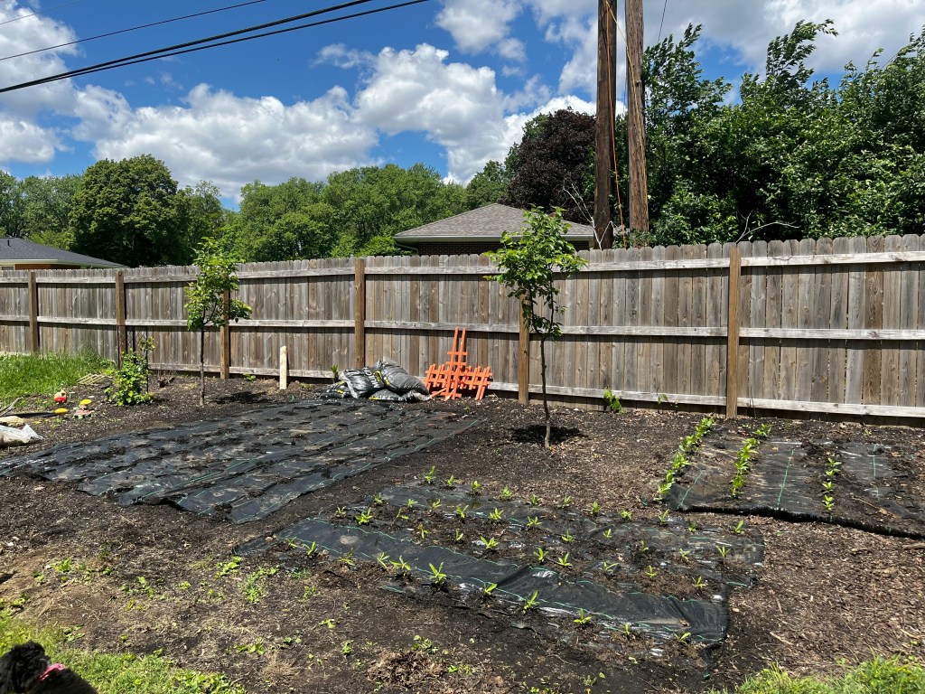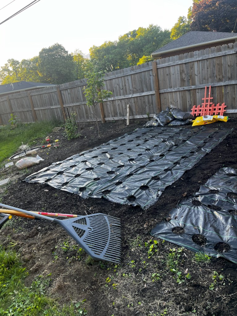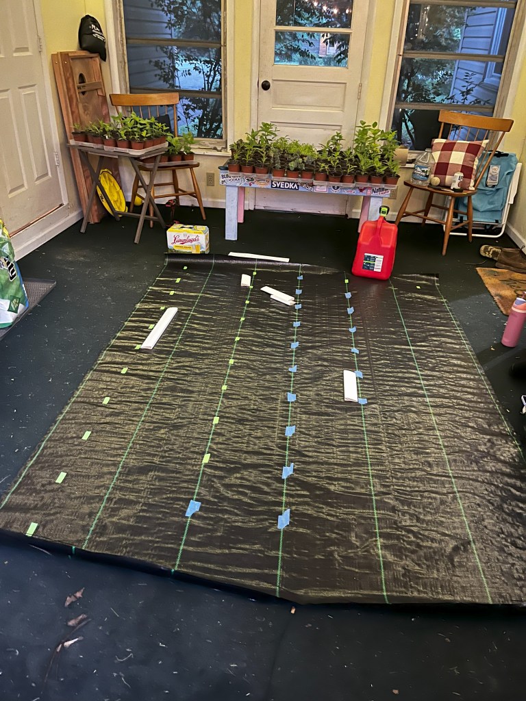 The weed mat made it incredibly easy to plant as well. With the layout (and the help of our family) we were able to get all the transplants and seeds into the ground in ~1 hour.